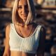 A Stunning Woman Enjoys the Tranquil Sunset by the Sparkling Sea, Embracing the Calming Moment of Nature’s Majesty