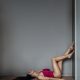 Beautiful girl is lying at the floor. Lady is relaxing at the floor of modern bright apartment